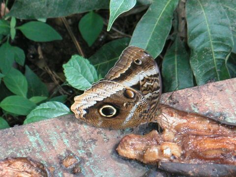 sie ließen sich zum Fressen nieder. Wir haben auch den Blue Morpho
