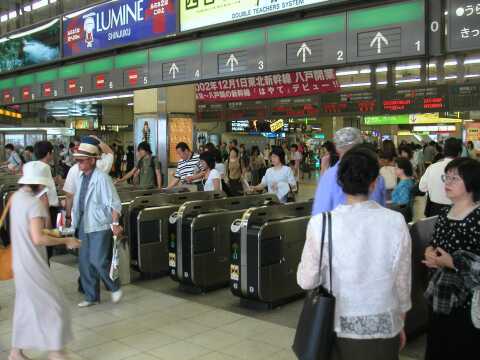 Begonnen habe ich heute eher mit den modernen Gebäuden. Dazu bin ich mit der S-Bahn in den Stadtteil Shinjuku gefahren. Schon der Bahnhof mit dem größten Personenaufkommen Tokios ist beeindruckend – weniger wegen des Gebäudes als wegen der Menschenmassen, die sich hier selbst am Sonntag durch die Gänge schieben. |