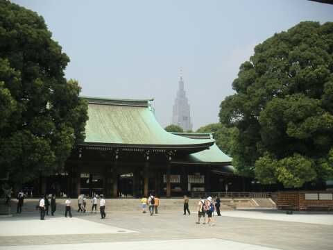 Der Meiji-Schrein wurde zwar erst 1920 zu Ehren des 1912 gestorbenen Kaisers Meiji geweiht, trotzdem vermittelt die ganze Anlage eine so überwältigende Atmosphäre von Zeitlosigkeit, Stille und Würde, dass man glaubt, ein uraltes japanisches Heiligtum vor sich zu haben. | ||||