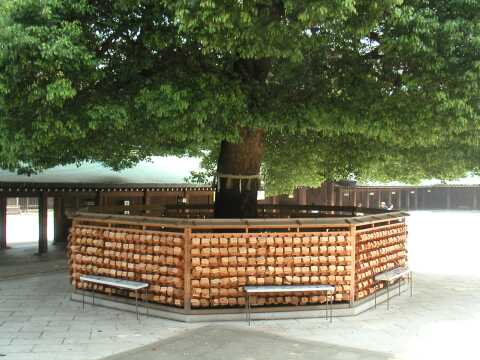 Hier unter dem Baum sind Tausende von Holztafeln aufgehängt, auf die Besucher Wünsche geschrieben haben. | ![]() |