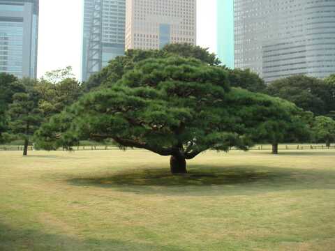 Der Yoyogi Park bildete stellt wieder einen Ruhepol inmitten der Stadt dar. Nach den Wolkenkratzern eine angenehme Abwechslung. Der Park besteht zu großen Teilen aus Wald, mit großen Rasenflächen dazwischen. Breite kiesbedeckte Alleen führen zum Meijen Schrein. |