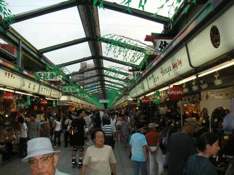 Der Weg zurück führt durch die quirlige Ladenstraße Nakamise, wo sich Touristenladen an Touristenladen reiht. Das ganze über 500m. Ein weiteres Indiz dafür, das hier der meistbesuchte Tempel Tokios zu finden ist. Wer hier Ruhe sucht, ist eher fehl am Platz. | ![]() |