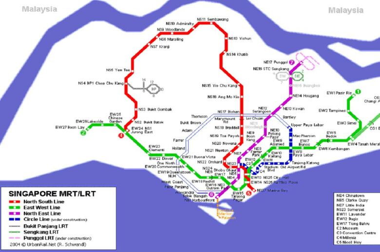 Die einfachste und günstigste Art sich in Singapur fortzubewegen ist die S-Bahn MRT. Hier der Streckenplan: |