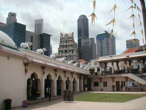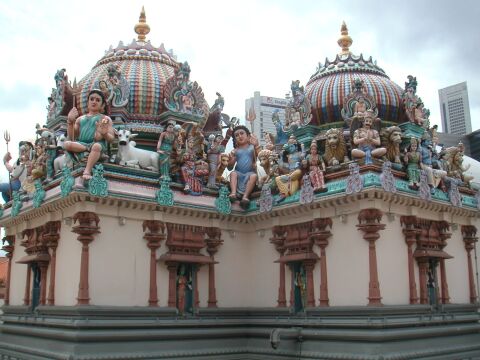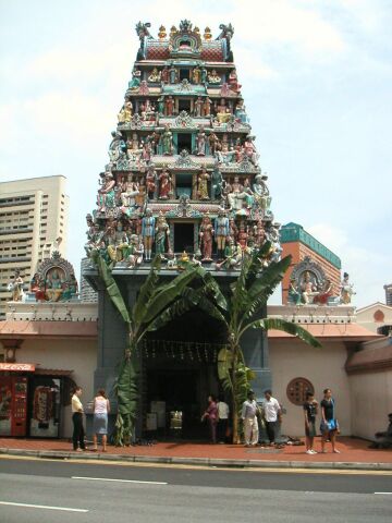 hinduistische Tempel in Singapur. Als wir dort waren, wurde gerade in einer Zeremonie eine Jadestatue gewaschen. |