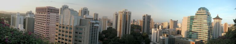 Dächern von Singapur. Die Aussicht auf den Hochhauswald von Singapur ist von hier aus auch nicht schlecht. |