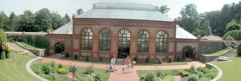 Oben sieht man das große Gewächshaus in den Gärten. | ||||