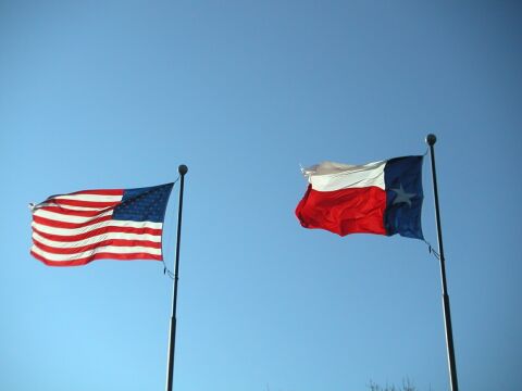 Die amerikanische und die texanische Flagge vor dem Hotel. In Texas scheint der Nationalstolz besonders ausgeprägt zu sein. | ![]() |