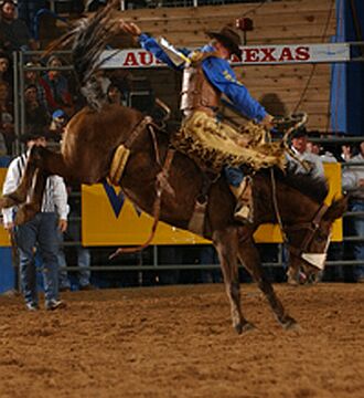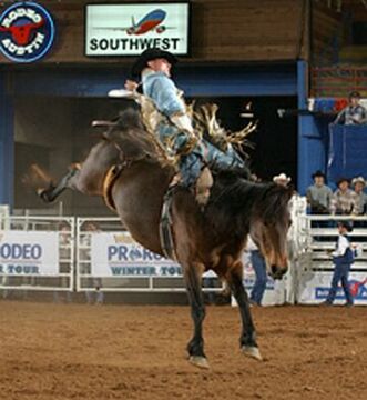 BAREBACK RIDING Hier muss sich der Reiter auf einem bockenden Pferd 8 Sekunden ohne Sattel halten. Schaffte er dass, wird die Leistung mit Punkten bewertet. |