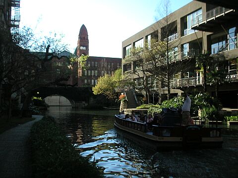 Kanälen bzw. Seitenarmen des San Antonio Rivers durchzogen. Man kommt sich